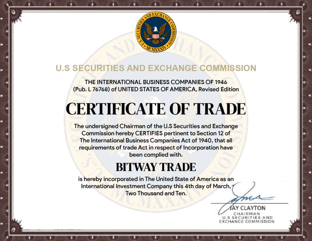 Bitrock Capital Traders, Certificate of Incorporation
